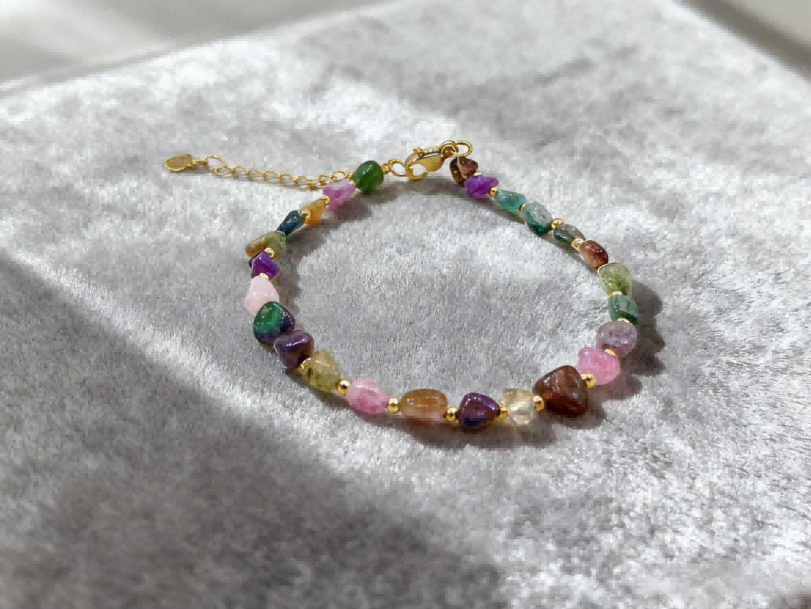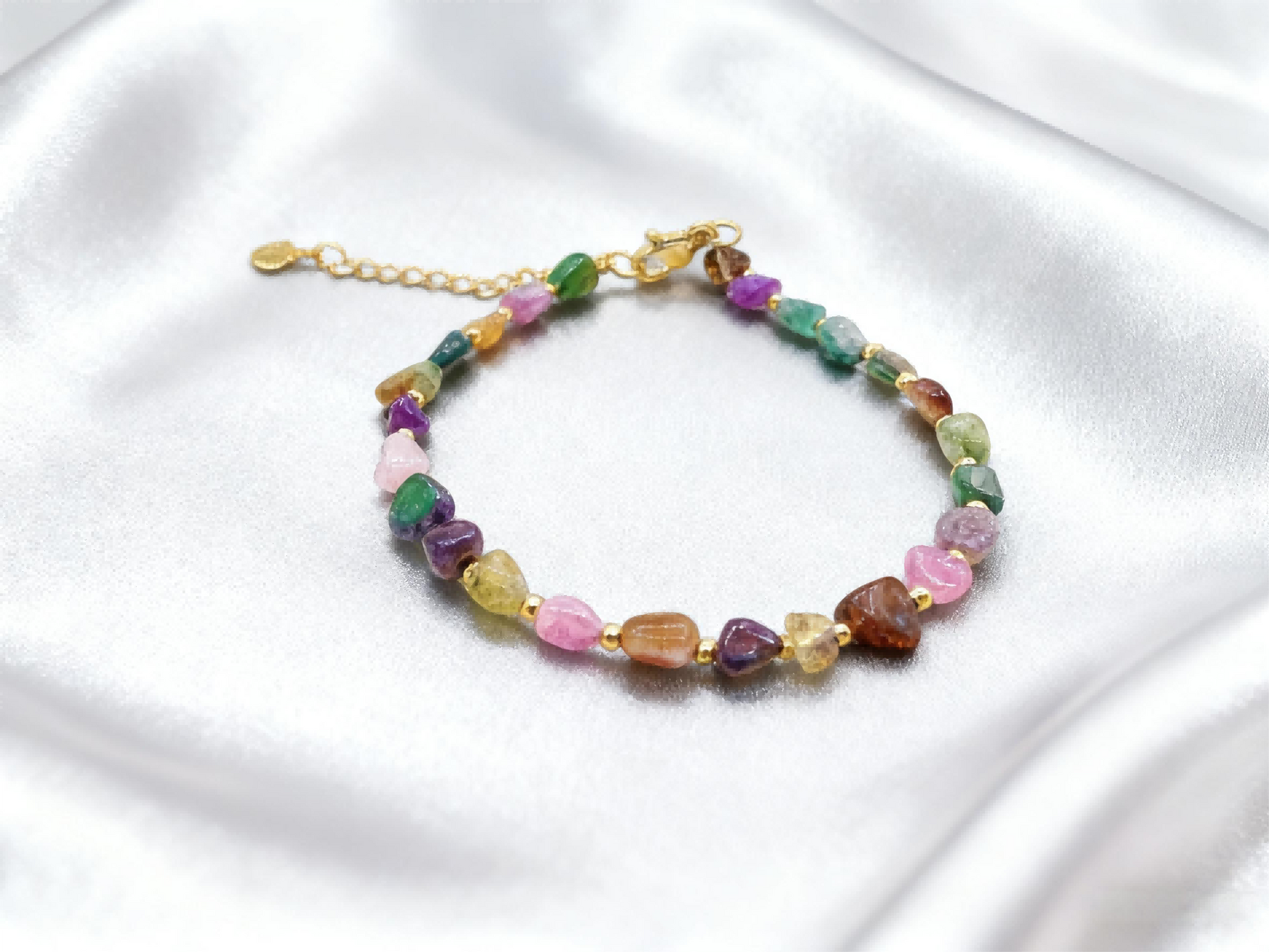 “Natural Tourmaline Bead Bracelet – Handpicked Colorful Crystal Jewelry for Gen Z Trendsetters, Energy-Infused Statement Piece with Vibrant Hues”